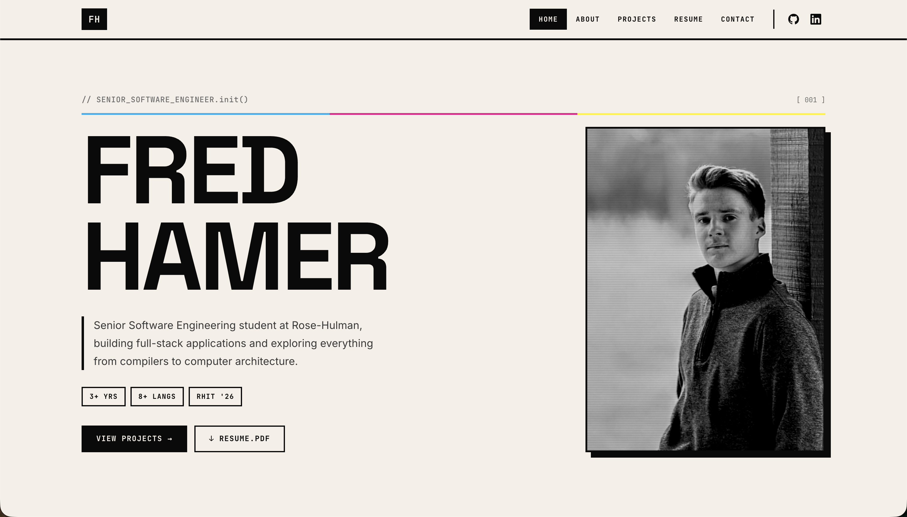 I'm a software engineering student at Rose-Hulman Institute of Technology and the person behind FGH Software. I build websites, web apps, and AI tools for individuals and small businesses who need real software — not templates.